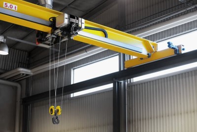 در سالن‌هایی که سطح زمین شلوغ است، جرثقیل سقفی بهترین گزینه برای جابجایی بار است.