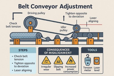 نشانههایی مانند انحراف مسیر، سایش غیر یکنواخت، لغزش روی رولیکها و افزایش غیرعادی مصرف انرژی، نشاندهنده نیاز به تنظیم مجدد هستند. با مشاهده این علائم، باید بلافاصله اقدامات لازم برای تنظیم مجدد انجام شود تا از بروز مشکلات جدیتر جلوگیری گردد.