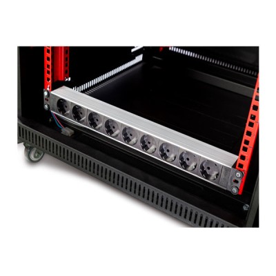 امکان نصب دربهای مشبک جلو و عقب برای بهبود تهویه و خنکسازی وجود دارد. همچنین، پایههای قابل تنظیم این رک، استفاده از آن را آسانتر میکنند.