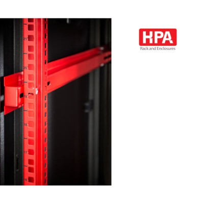 رک ایستاده 32 یونیت HPA با طراحی پیشرفته، امکان مدیریت بهینه تجهیزات شبکه را فراهم میکند. این رک مجهز به یک قاب مشبک جلو برای گردش هوای بهتر و خنکسازی تجهیزات است. همچنین، چهار چرخ قفلدار به این رک امکان جابجایی آسان را میدهند.