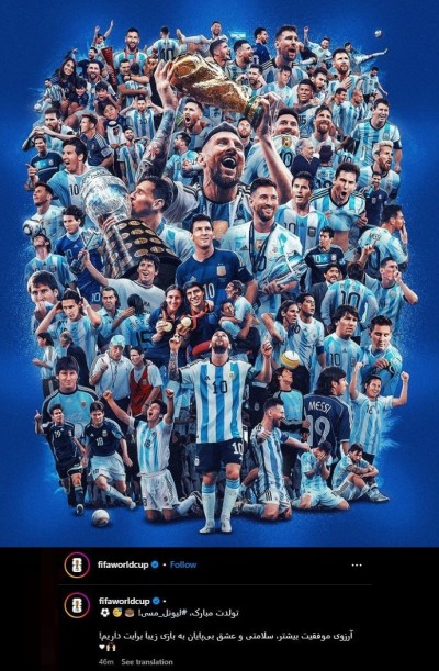 عصر امروز پستی از صفحه رسمی فیفا در اینستاگرام منتشر شد که کاربران ایرانی را شوکه کرد. افرادی که صفحه رسمی فیفا را دنبال میکنند پستی از تبریک فیفا به مناسبت تولد مسی به زبان فارسی دیدند.