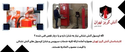 با استفاده از خدمات شارژ کپسول آتش نشانی فوری، ساختمان ها و ادارات در تهران میتوانند از امنیت تجهیزات خود اطمینان داشته باشند و در مواقع اضطراری، عملکرد کامل کپسول ها تضمین شود.