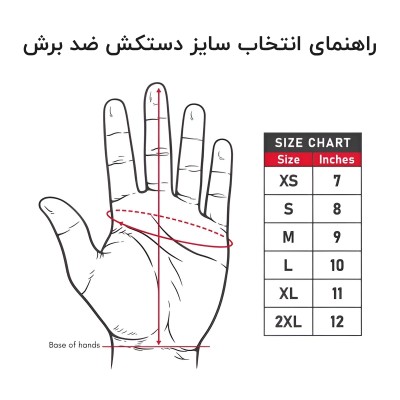در انتخاب دستکش ضد برش، سایزبندی صحیح هم روی راحتی و ایمنی کارگر تأثیر مستقیم دارد و هم جلوی هدررفت هزینه خرید عمده را میگیرد. جدول زیر بر اساس استاندارد جهانی دستکش ایمنی (EN 420 و EN 388) و سایزبندی رایج در بازار ایران و جهان است؛