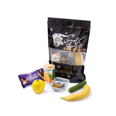 از پر فروش ترین پک پذیرایی ترحیم در دلیشه پک شماره 19 ترحیم می باشد. محتویات این پک شامل کیک بسته بندی البینای بنفش، ابمیوه سان استار، سیب ، حلوا گلی و خرما با مغز گردو، موز و خیار می باشد که همگی اینها در پاکت زیپ کیپ دسته دار جای میگیرند.