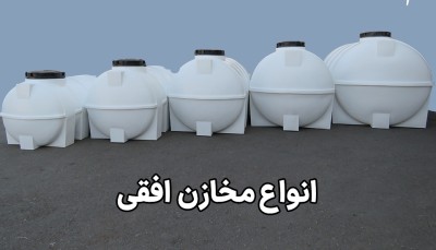 مخزن افقی (خوابیده)، عرض بیشتری نسبت به ارتفاع دارد و به صورت استوانهای در موقعیت مکانی مورد نظر قرار میگیرد. پایههای منبع افقی از جنس خود مخزن است و باعث افزایش وزن مخازن افقی میشود. در واقع این پایهها هستند که باعث افزایش حجم و افزایش قیمت مخزن افقی نسبت به مخزن عمودی میشوند، زیرا حجم مواد پلی اتیلن بکار رفته در آنها بیشتر است. این دو مخزن از نظر کیفیت و طول عمر، با یکدیگر تفاوتی ندارند و در یک شرایط یکسان و استاندارد تولید میشوند.