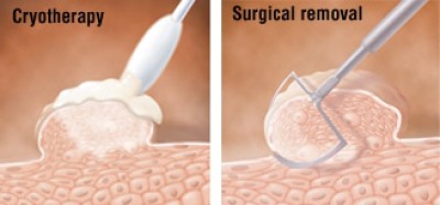 روش کرایوتراپی (جراحی به روش کرایو) توسط اعمال نیتروژن مایع و یخ زدن ، زگیل های دستگاه تناسلی را از بین می برد. این عمل در مراحل زیر انجام می گیرد: